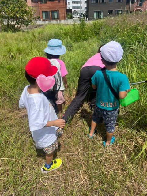 午前中は虫取りチームとブランコチームで二つに分かれて遊びました!