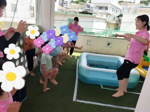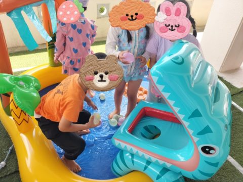プール以外でも水遊びを楽しめるようにたくさん遊びが用意されています😊