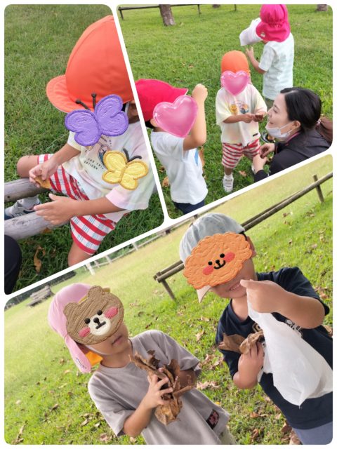 皆で公園に行って落ち葉をたくさん拾いました!