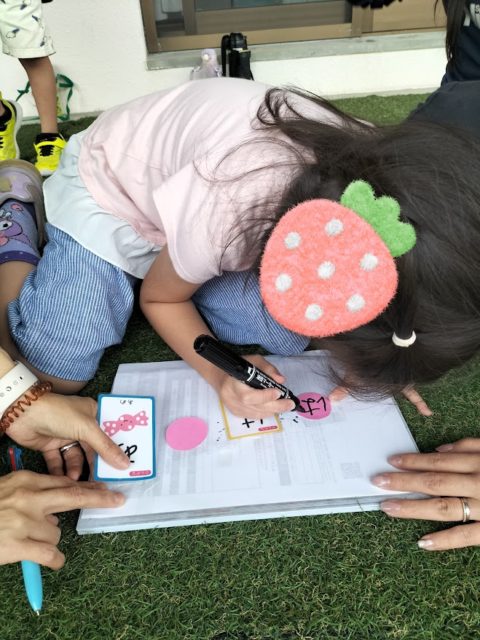 「カードを取ったから文字は○○さんが書くね」など相談しながら交代で、できましたよ👏🏻