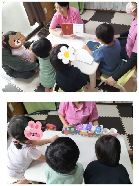 こちらのグループは、絵本を見ながら動物や色のマッチングをしています📕🐷🐶