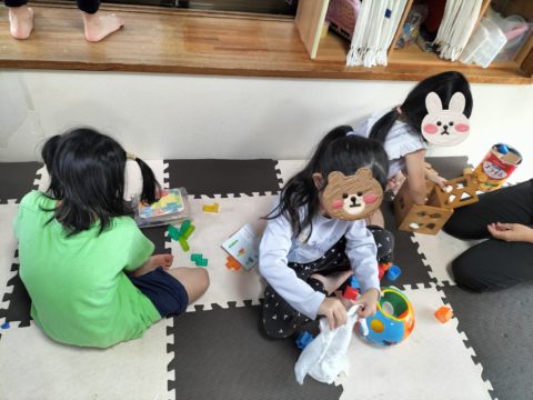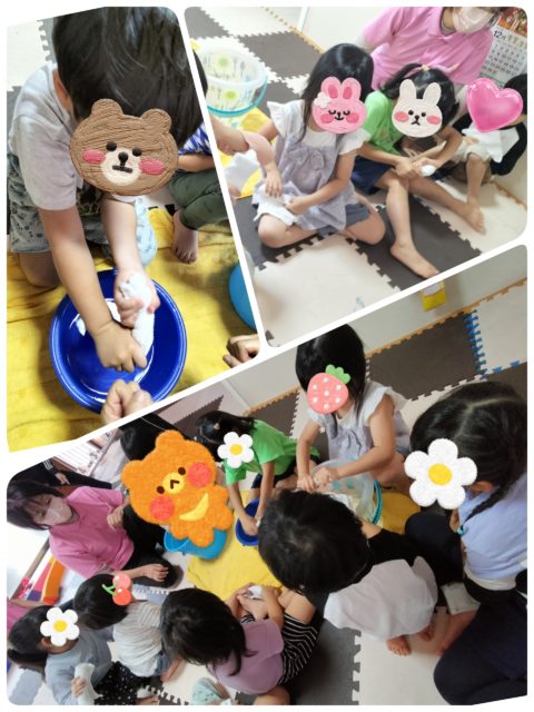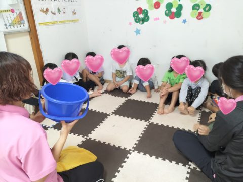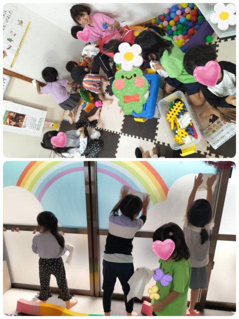 療育室グループはおもちゃやカラーボール、窓ふきをします!