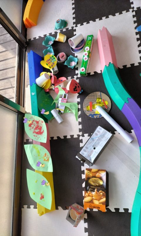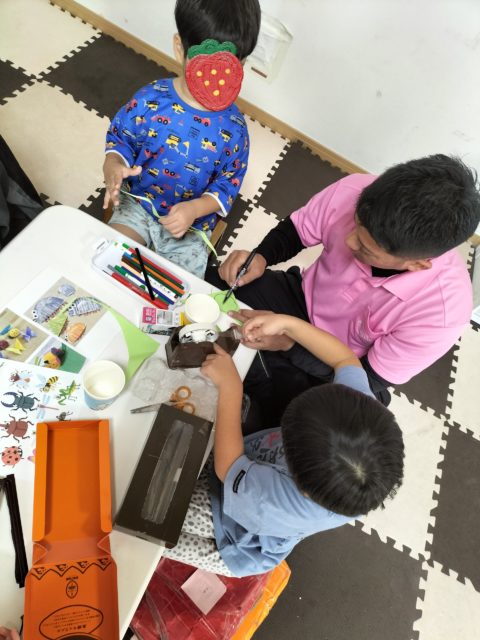 展示会のテーマに合わせて森にいそうな食べ物や生き物など沢山作ります!