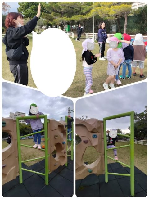 公園には、オオゴマダラのちょうちょが見れるガーデンと固定遊具があります!今日は、みんなで遊具で遊んできましたよ♪(^^♪