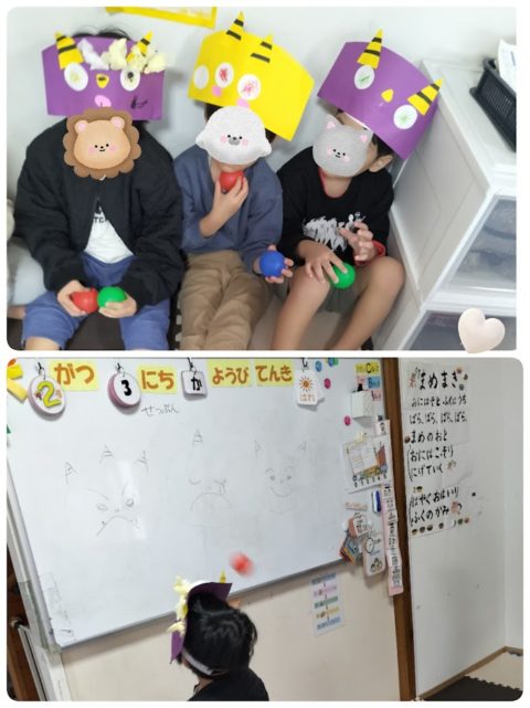 「幼稚園で豆まきして、鬼が逃げていったよ!!」