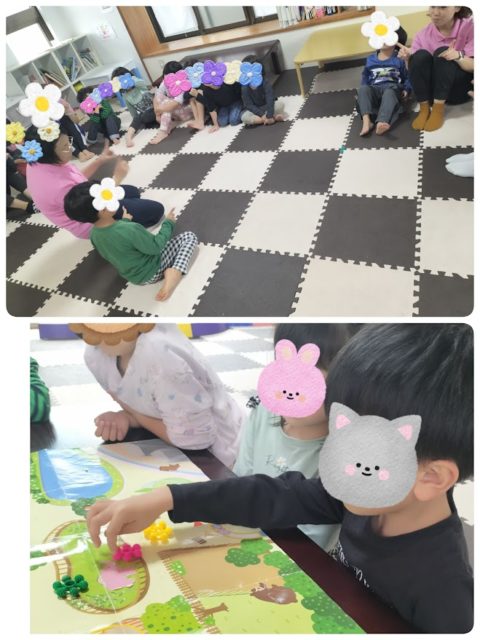 二つ目のグループは、“おべんとうバス”の絵本で手袋シアターをしながらマッチングをしています🙆‍♂️